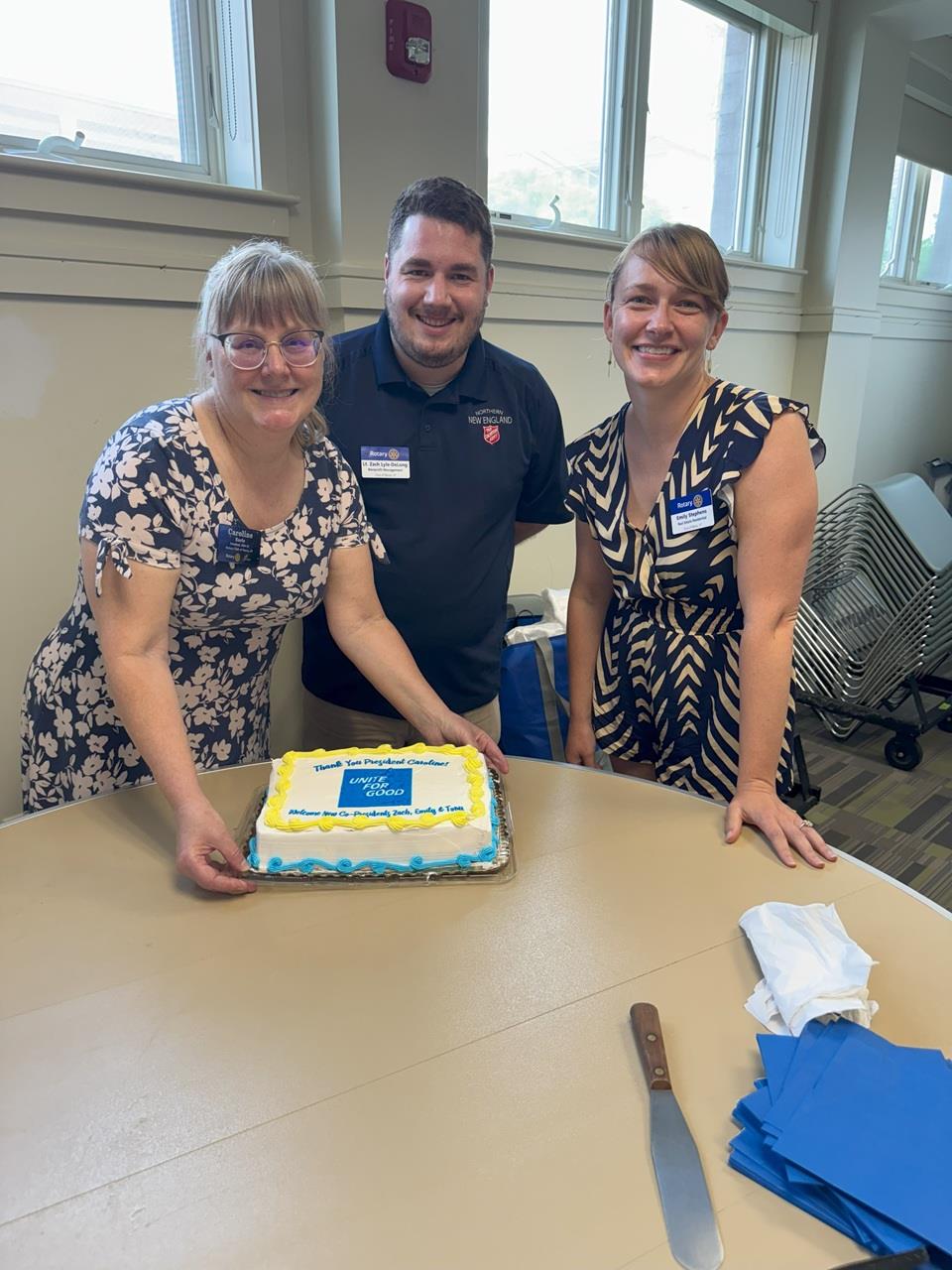 On June 25, 2025, the Rotary Club of Barre had a presidents changeover lunch at The Aldrich Public Library. Outgoing president Caroline Earle welcomed the gathering of 18 people, including past district governor Louisa Tripp and Montpelier Rotarian Fred Bashara.