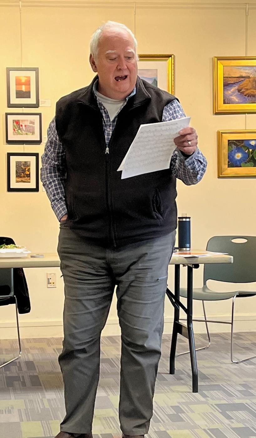 Art added a “roll” of dollars to the coffers: wonderful to see George’s back; one Happy for one eye and one Sad for the other eye (vision affected by palsy); and happy to have sold several of his paintings as a result of the showing at the Barre Opera House.