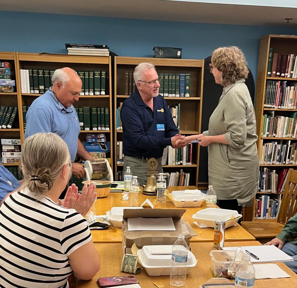 Rotarians were impressed with work that Downstreet is doing; its efforts to provide affordable housing and their commitment to creating vibrant communities. After an appreciative round of applause, President Tony presented the Rotary coin to Angie, noting there is no doubt that she and her organization practice the tenets of the Four Way Test.