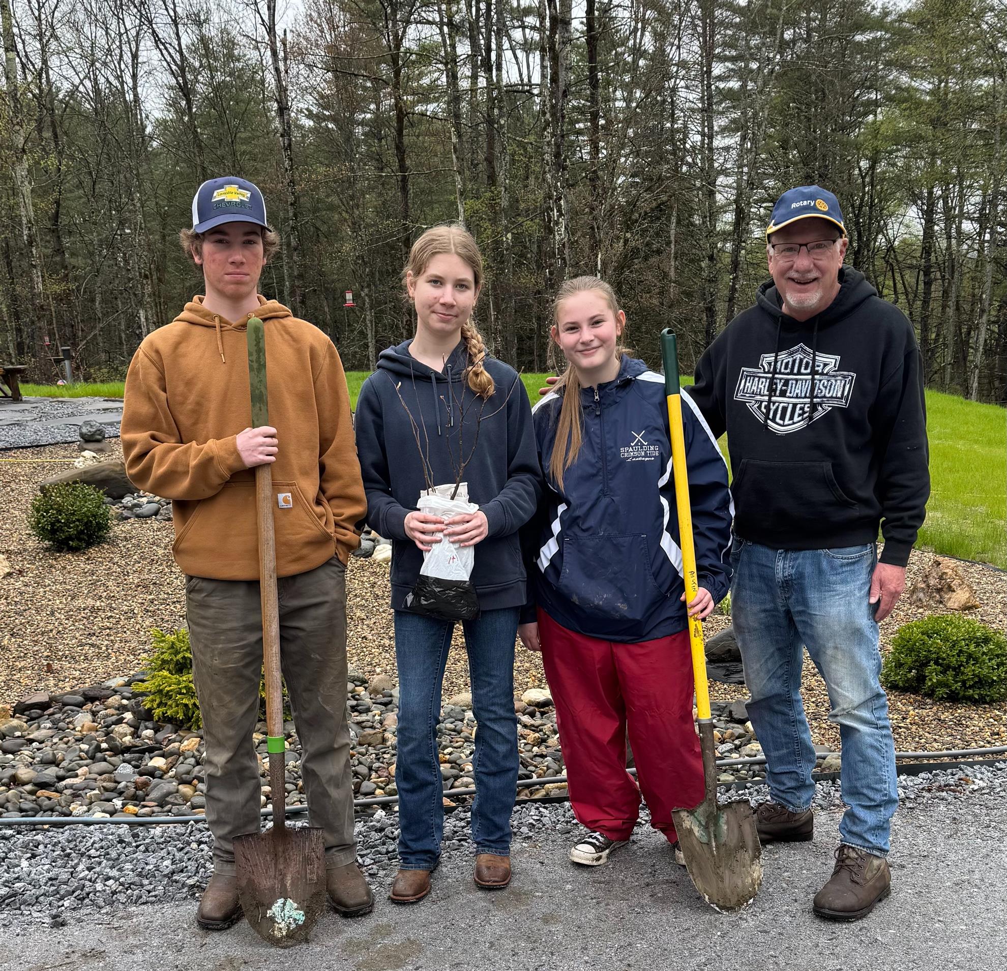 Ace Reporter: Caroline Earle Opening Gambit A small group of Rotarians gathered today, opening the meeting with a pledge and reciting the Four Way Test. Barely had the members sat down to eat when Bob hopped up to provide a happy dollar for the extraordinary preparation and organization of Karl in organizing the roll out on Tuesday night of the 2025 Art Splash items along Main Street. This was swiftly followed by Bob’s $2 fine on Tony for deploying part of the Rotarian Green Up Day group to clean up the area around his very own business. With a smile, Tony admitted his building and surrounding area looks “great” after these efforts & paid his fine without controversy. Tony then lent his own happy dollar for the successful Tree Plenish with SHS this past Sunday, ending with planting four trees at our local Police Chief’s home. President Caroline managed to squeeze in her own happy dollars for the Art Splash, for two of her kids’ graduations this month, combined with a sad dollar for having to miss the Drop ‘n Swap due to one of those graduations. Karl then added his own happy dollars for the wonderful efforts of sponsors, artists & volunteers who made Art Splash 2025 possible. Jan added her own happy dollar because the after Art Splash drinks gathering at Tally represented the first time since HS that she had been able to hang out with boys after dark. Eddie added happy dollars for a great golf outing with his brother Mike at the Burlington Country Club, where he won $45 with his terrific score. Karl wrapped up the final happy dollars with another dollar to Eddie, who was able to swap in a local very tall and helpful sub for the Art Splash rollout. Move, Counter Move Updates were provided by Tony about the breakfast, Karl about the Art Splash, and Eddie about the Concession Stand donations. President Caroline shared the news that SHS was unable to identify any student candidates for RYLA this year. The District is asking Barre Rotary to consider sponsoring two RYLArians from the Colchester Club, as a donation. The Club voted unanimously to sponsor one candidate, by motion of Karl and seconded by Tony. Finally, President Caroline shared that our Club needs to vote to accept or reject Amanda Vincent, nominated to be DGND, and to elect an Elector, who will represent our Club for voting purposes at the District Conference business meeting. Information will be sent to all of our members, with votes to take place at our next meeting. Check Mate A fter concluding its business, members gathered for games for the remainder of the meeting. Karl, Emily, Jan & President Caroline played a game of “icebreaker” Jengo. Every piece of the Jenga tower had an ice breaker question. Suffice to say that all four members learned something new about one another! Meanwhile, at separate tables, Ted & Tony and Bob & Eddie engaged their wits and some intense math over cribbage. For one afternoon, Barre Rotarians were gamers! Drop ‘n Swap The annual Drop ‘n Swap was held on Saturday, May 10 and Sunday, May 11 for the first time at the BOR. Clothing and other wearing apparel were dropped off, sorted and placed on tables on Saturday. On Sunday, for $2, entrants were allowed to take away all the items that they could carry. All this accomplished under the superb leadership of Nicole DiDomenico and a plethora of enthusiastic volunteers; Rotarians and friends providing a valuable service to the community. “Service About Self !” Tree-Plenish For the 4th year on May 4, 2025, the Interact Club at Spaulding High School spearheaded Tree-Plenish. The goal of Tree-Plenish is to plant trees to offset Spaulding’s carbon emissions. A Tree-Plenishevent is a community tree planting event organized by students and supported by the organization Tree-Plenish. The event's goal is to replenish the environment with trees, offsetting the impact of paper consumption and other environmental issues. These events are designed to promote sustainability, raise awareness and empower students to take meaningful environmental action. hundred and ninety-four Red Maple, Eastern Redbud, and River Birch saplings were distributed and planted! Trees were planted at 15 homes and 20 trees were planted at the Wayside Restaurant ! Barre Rotarian Tony Campos offers his service as a par excellence transporter. Hats off to SHS Interact for making Barre a better place and more sustainable through their efforts! |