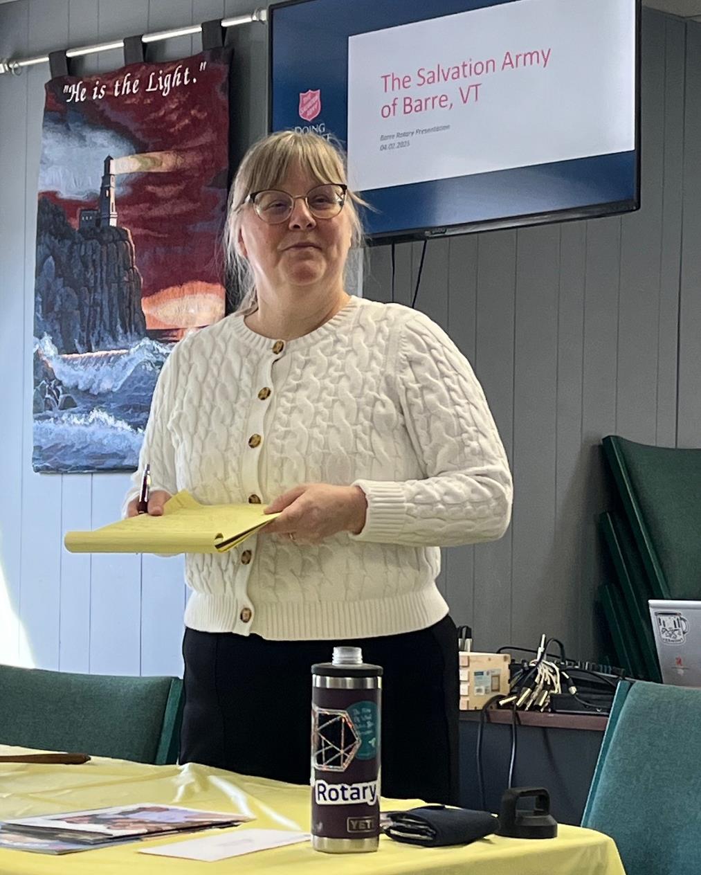 President Caroline opened the meeting with nine Rotarians reciting the Pledge of Allegiance followed by grace delivered by our host and fellow Rotarian Lieutenant Zachary Lyle-DeLong, Co-Corps Officer/Pastor of the Barre Salvation Army.